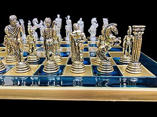 The Chess Empire is proud to introduce you The Greek Warrior 3 solid Alloy Zinc chess set pieces along with 32 x 32 CM Turquoise Oxidation Chess board. Exceptionally un-matched quality and craftsmanship work on every single piece. The very exclusive workmanship on every piece is crafted with perfection.
